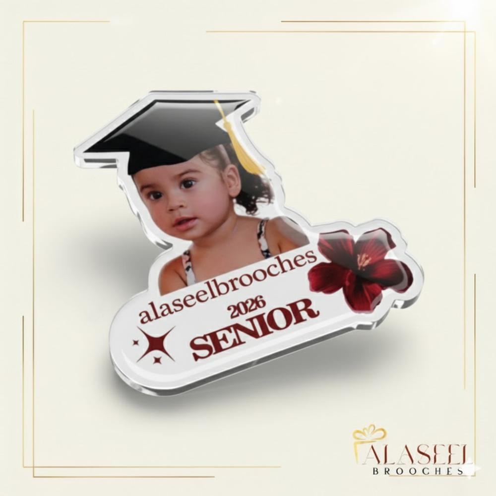 بروش تخرج بالصورة والإسم وردة حمراء