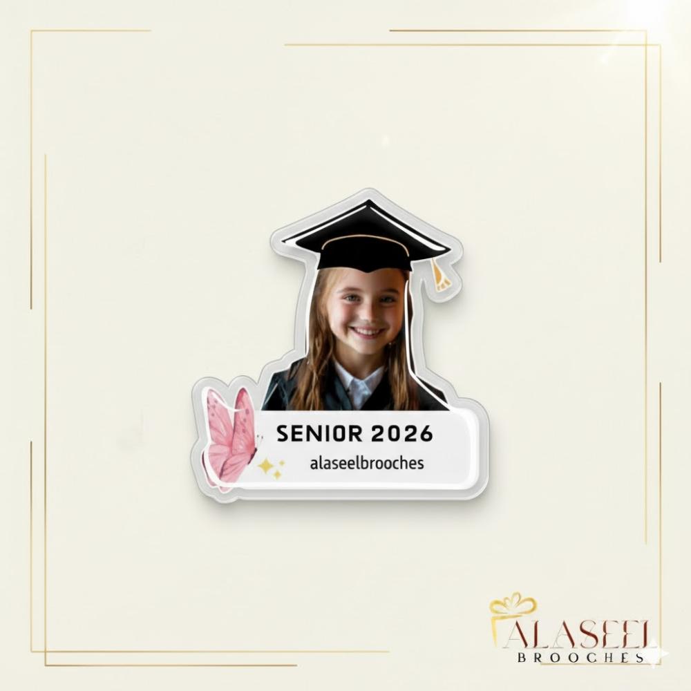 بروش التخرج المثلثي بالفراشة الوردية