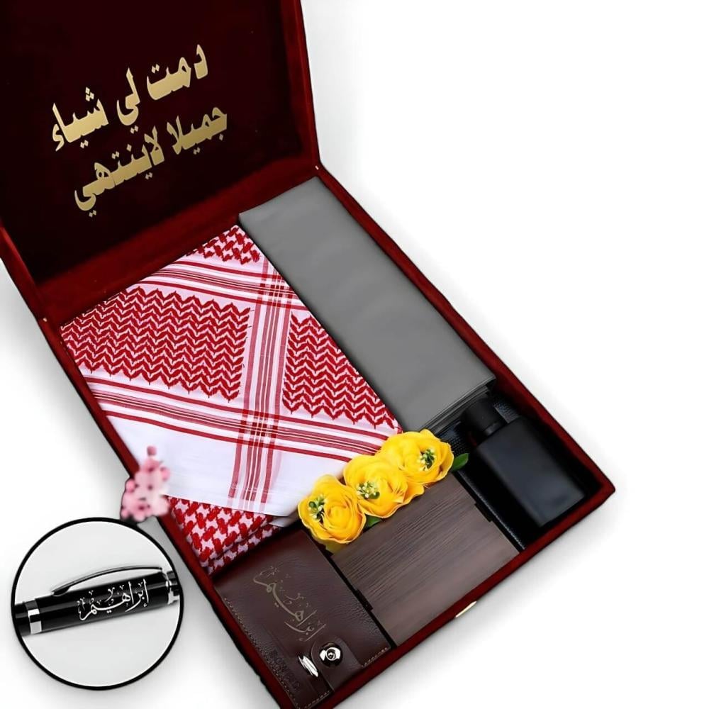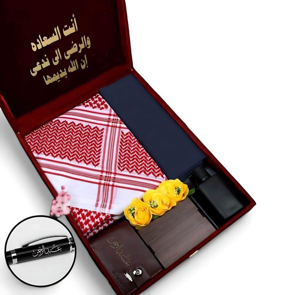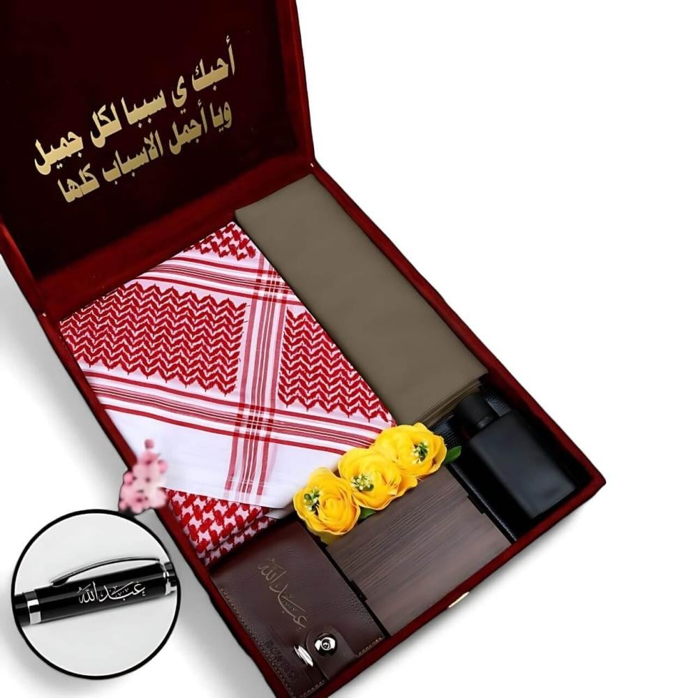 هدية رجالية فخامة | قماش، شماغ سوبر ديلوكس، محفظة جلدية