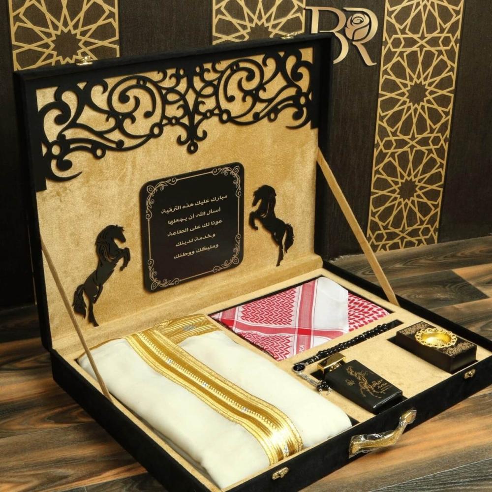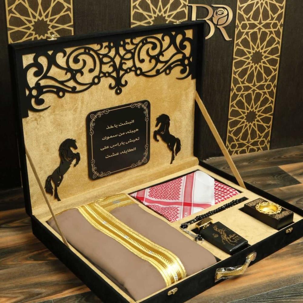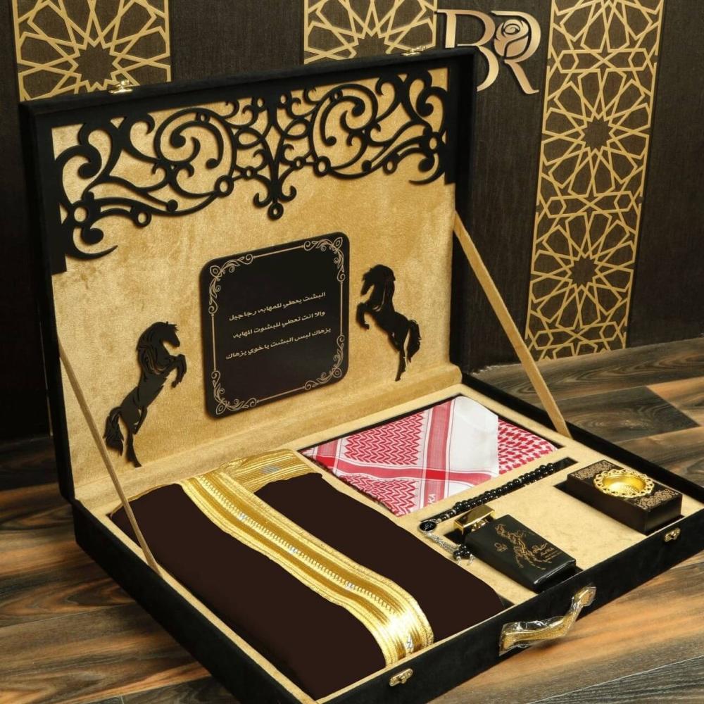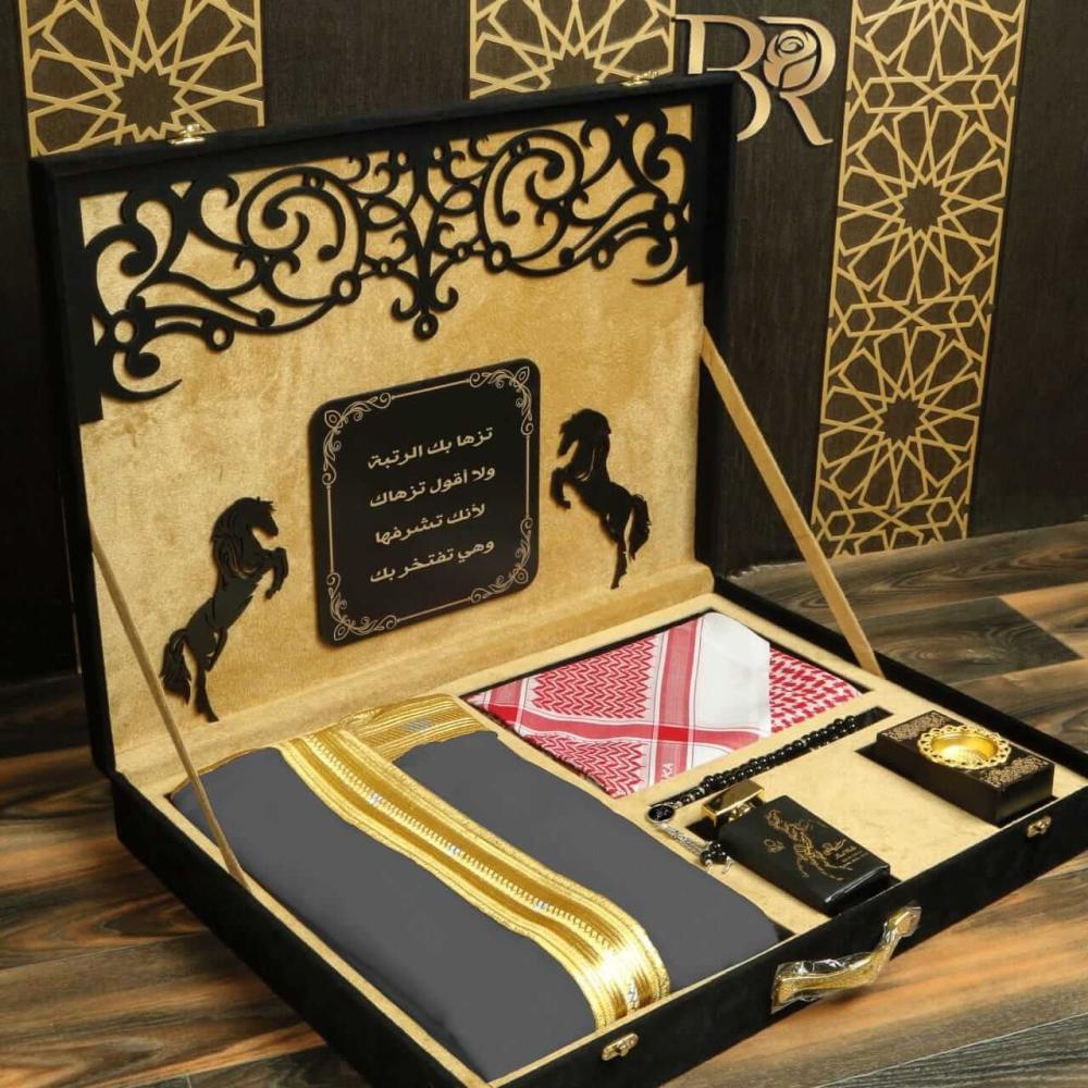 هذا البوكس ليس مجرد هدية، بل هو الحل الذي "يفك لك أزمة" الإهداء. تخيلي سعادته وهو يفتح هذا الصندوق الفاخر ليكتشف تنسيقًا متكاملًا يعكس اهتمامك بأدق التفاصيل. من المشلح الفاخر الذي يضيف هيبة لإطلالته، إلى الشماغ العملي، والعطر الجذاب الذي يكمل أناقته، كل قطعة وضعت في مكانها الصحيح لتقدم تجربة إهداء ناجحة ومضمونة.