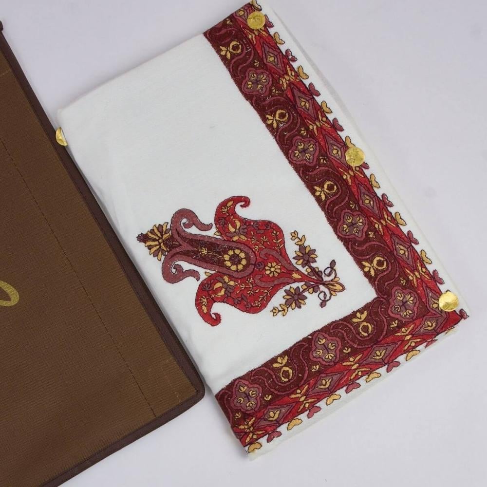 شال رجالي أبيض كريمي بنقوش حمراء وعنابية
