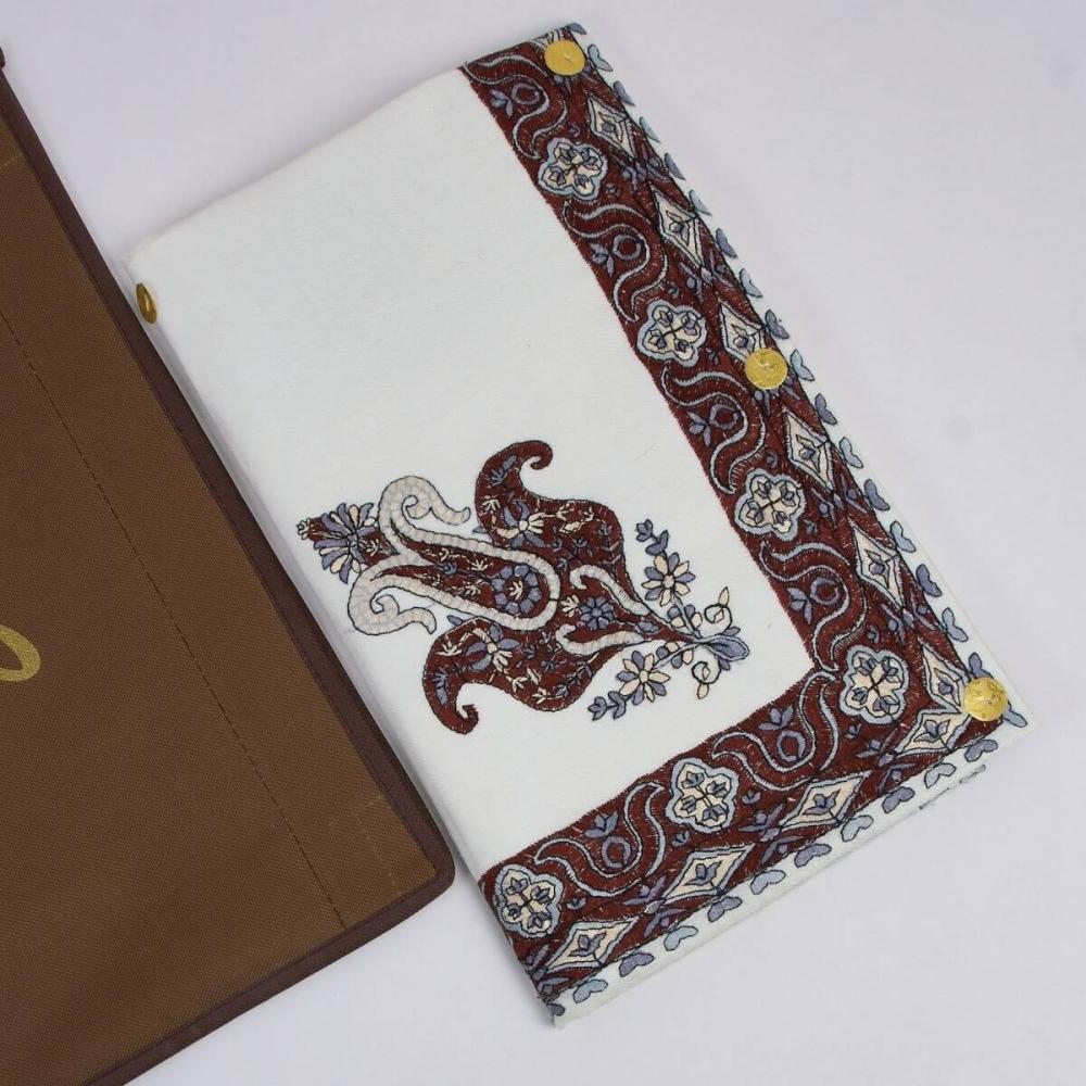 شال رجالي أبيض كريمي بنقوش بنية