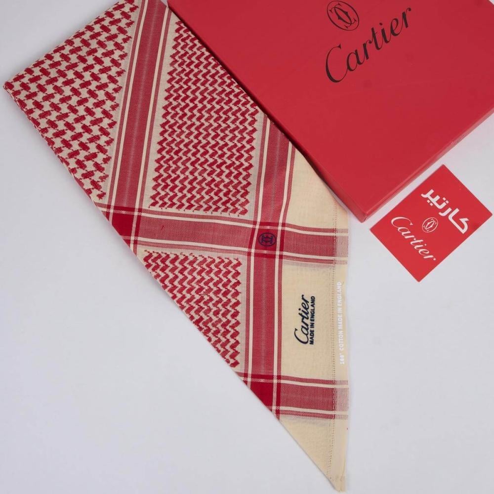 شماغ رجالي بيج بنقشة حمراء مع علبة حمراء