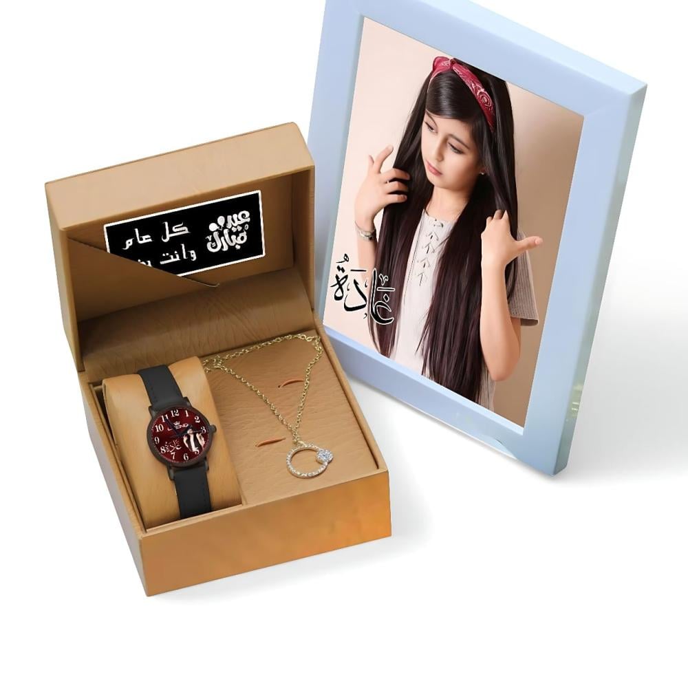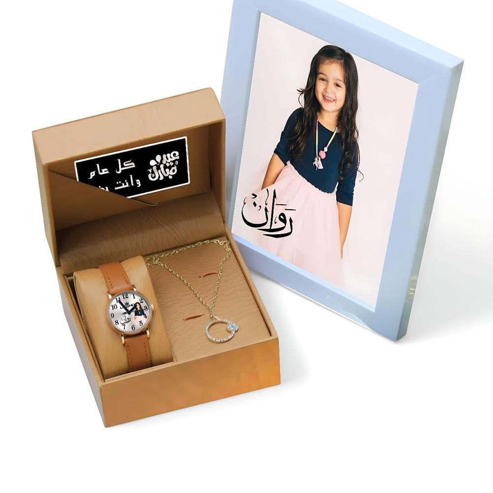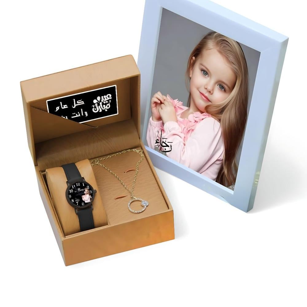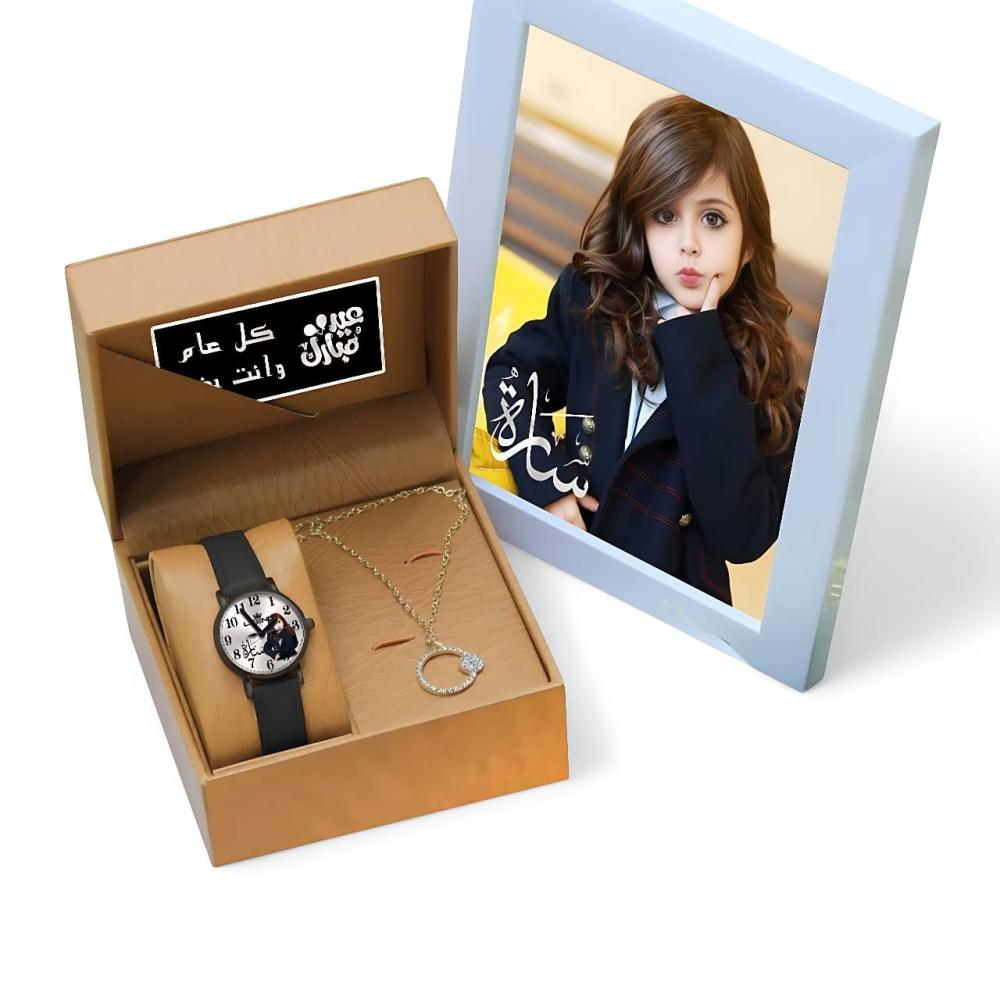 هدية بناتية أنيقة | طقم ساعة وسلسال مخصص