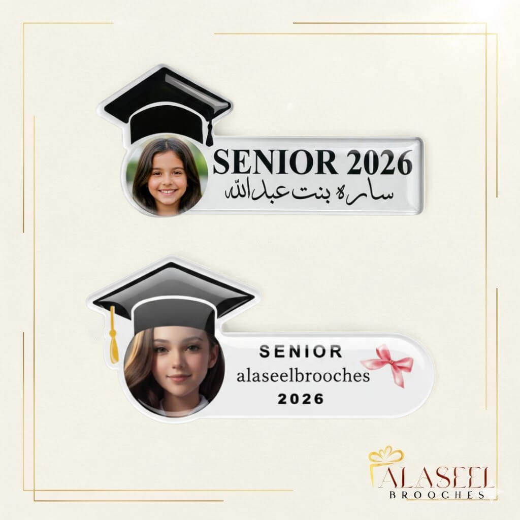 "الجمال يكمن في البساطة". هذه هي القاعدة الذهبية التي تحكم عالم بروش تخرج رسمي. هذا النوع من البروشات مصمم خصيصاً ليسلط الضوء على جوهر المناسبة نفسها، دون أي إضافات قد تشتت الانتباه عن العناصر الأساسية: صورتك، اسمك، وسنة تخرجك.